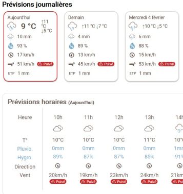Le widget météo offre une vision claire et immédiate de votre météo du jour sur MesParcelles.